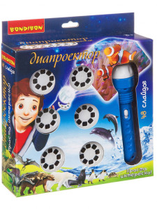 Диапроектор-фонарик Bondibon, 6 дисков со слайдами (3 с животными,3 с динозаврами)